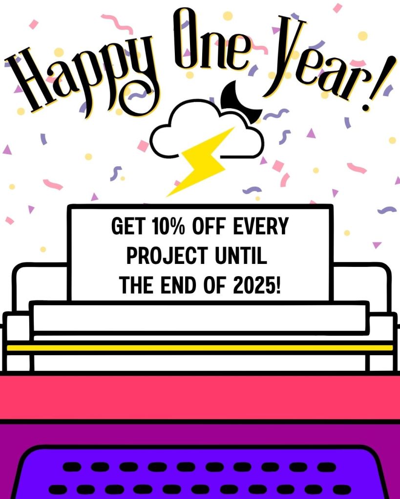 Celebrate Lightning Flash Writing’s One Year Anniversary with 10% off EVERY project until the end of 2025! Simply contact me to start your project and I’ll apply the discount!